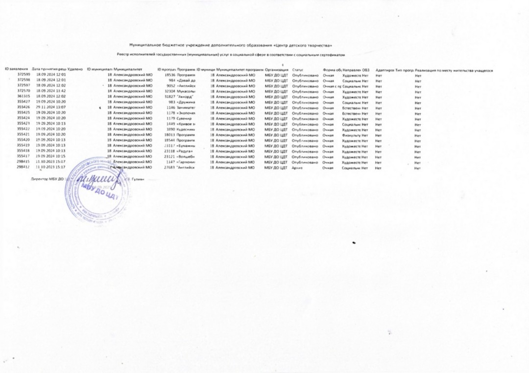 Реестр исполнителей государственных (муниципальных) услуг в социальной сфере в соответствии с социальным сертефикатом