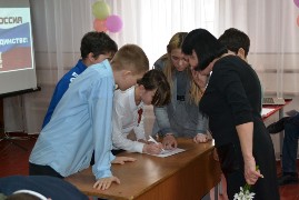 1 ноября, в преддверии Дня народного единства, в ЦДТ проведено мероприятие, посвященное этому празднику «Единство народа – вот наша сила!» Организаторы праздника главной целью ставили развитие интереса обучающихся к истории праздника, к историческому прошлому нашей страны, а вместе с этим и развитие чувства долга и ответственности за судьбу своей Родины. В ходе мероприятия ребята узнали какие народы проживают в нашей стране, как они дружно живут и работают и с какими историческими событиями связан этот праздник. Воспитанникам была предложена историческая игра – путешествие, где они узнали много нового и интересного о двух добрых молодцах Кузьме Минине и Дмитрии Пожарском, об их роли в становлении и единении Руси, борьбе против поляков и о том, как смогли победить и отстоять независимость нашей страны. За средства князя Дмитрия Пожарского в г. Москве на Красной площади был воздвигнут храм – Казанский собор в честь освобождения Москвы от поляков, а позже в память о защитниках Руси был поставлен памятник Кузьме Минину и Дмитрию Пожарскому. В видеоролике, просмотренном ребятами, были показаны главные символы нашей страны: флаг, герб и гимн, что помогло закрепить знания детей об этих важных символах. В заключении воспитанники выполнили несколько заданий, предложенных ведущими, и смогли определить, что Единство – это согласие, мир, милосердие, надежда, объединение и доброта.