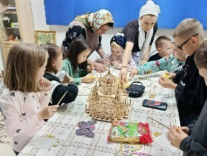 В ходе занятия ребята изготовили открытку для поздравления из броссового материала: картон, пластиковые крышечки и пенопласт. Кроме этого, педагог рассказала детям о том, что в этот день около 2000лет назад, когда на землю падал первый снег, и Деда Мороза называли Морозко, родился он. С тех пор ему в этот день дарят новую шубу, шапку и валенки, украшенные вышивкой. Эту традицию в семьях россиян поддерживают и в настоящее время.