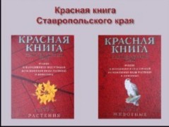 Ставропольский край славится своей поистине уникальной природой. На его территории можно найти минеральные источники, красивые озера и горы. Красная книга Ставропольского края защищает все богатства этой земли от истощения. На сегодняшний день в ней насчитывают около 203 видов растений, 5 видов грибов и 163 видов животных. На рассмотрении находится еще 27 видов растений и 23 вида животных.