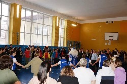 Дети радостно водили хороводы, пели песни, играли в народные игры, зазывали Весну, спасали Масленицу от злой Зимы. В заключении ребята дружно простились с Масленицей хороводом.