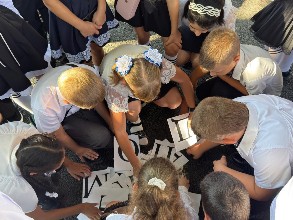 Затем ребята постарались визуализировать свою искреннюю благодарность за мирное небо рисуя вечный огонь мелом. День прошел в теплой, дружественной атмосфере.